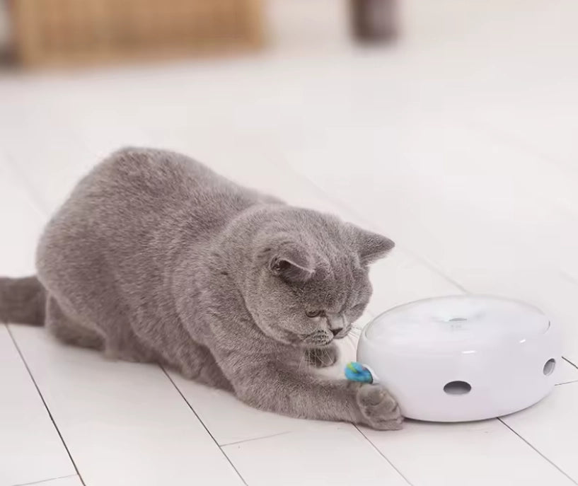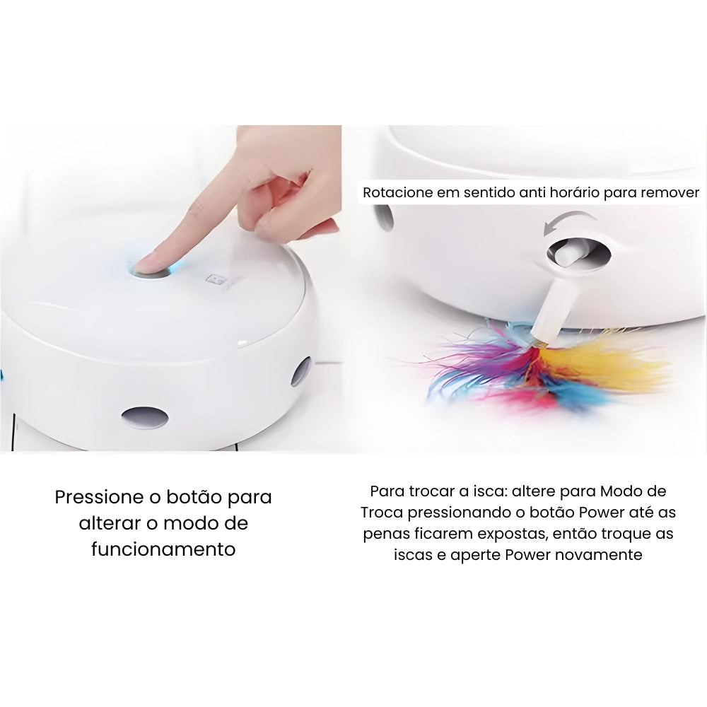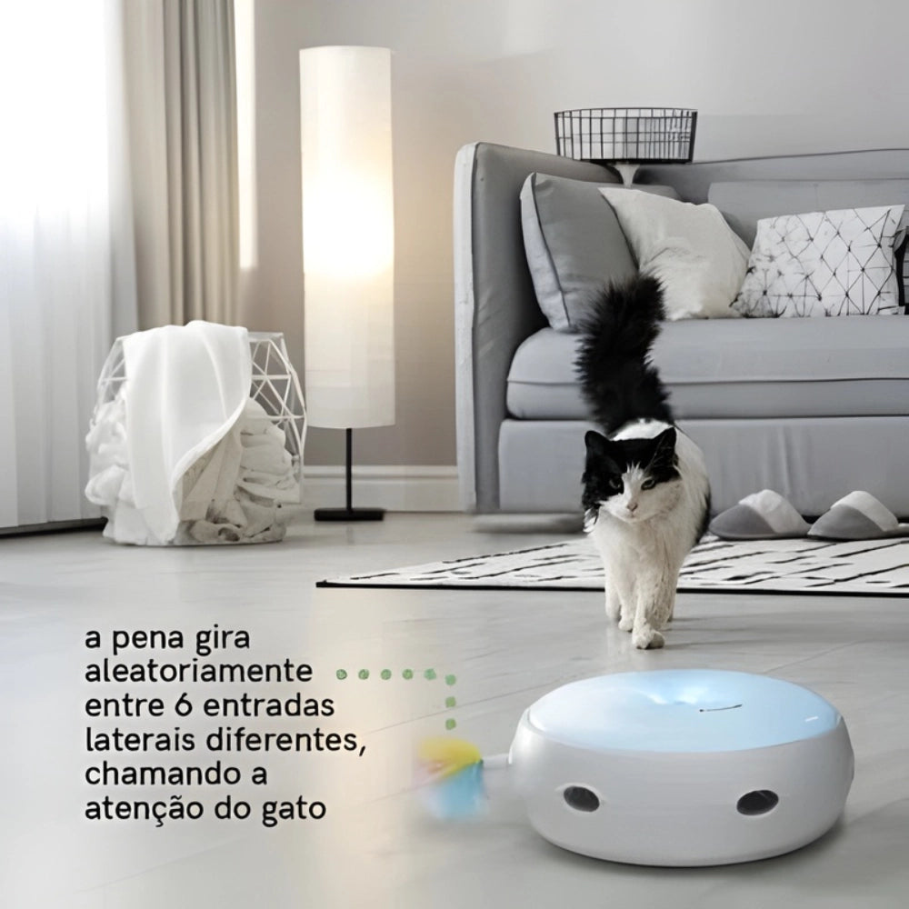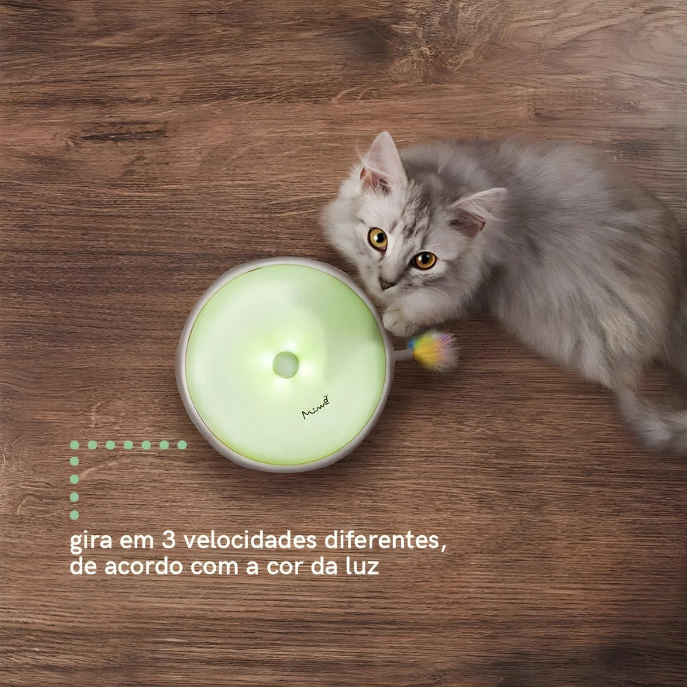 A pena do Crazy Donut irá aparecer aleatoriamente de 6 buracos, em diferentes intervalos de tempo. Com a adição de iluminação LED colorida, os gatos são atraídos para a experiência deste brinquedo para pegar a pena!