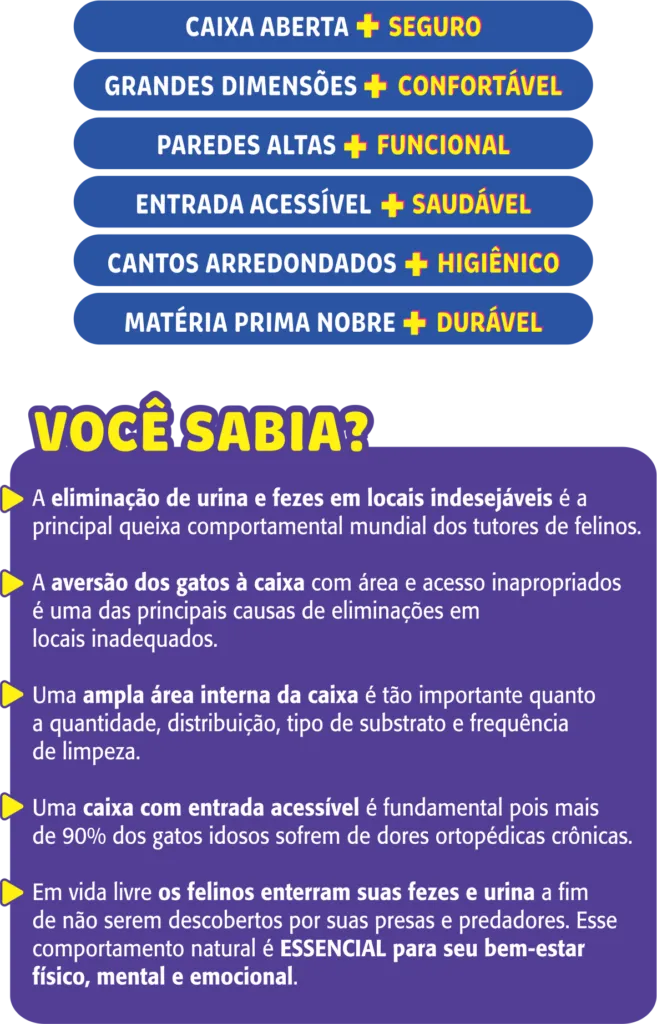 É isso mesmo!!! Os gatos realmente necessitam de uma caixa de areia maior que a maioria disponível no mercado, para exercerem adequadamente os comportamentos naturais de eliminação.