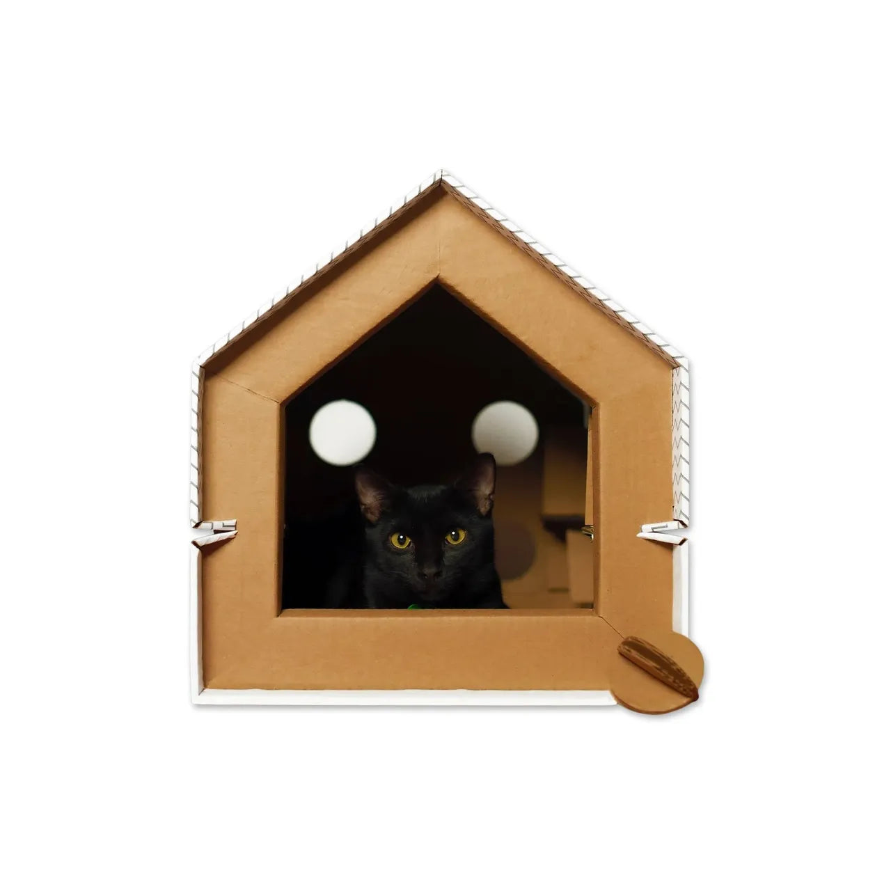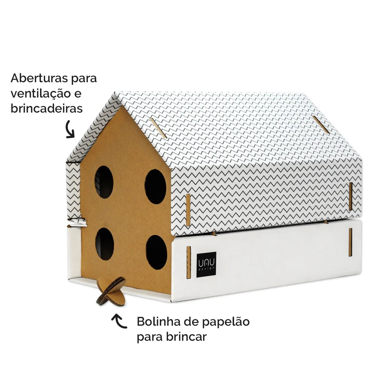 ATENÇÃO: A casinha UAUhaus não é recomendada para felinos que tem o hábito de MORDER papelão e destruir caixas de papelão. Embora a casinha seja bem mais resistente que uma caixa, ela continua sendo de papelão e não vai resistir aos dentes de um felino.