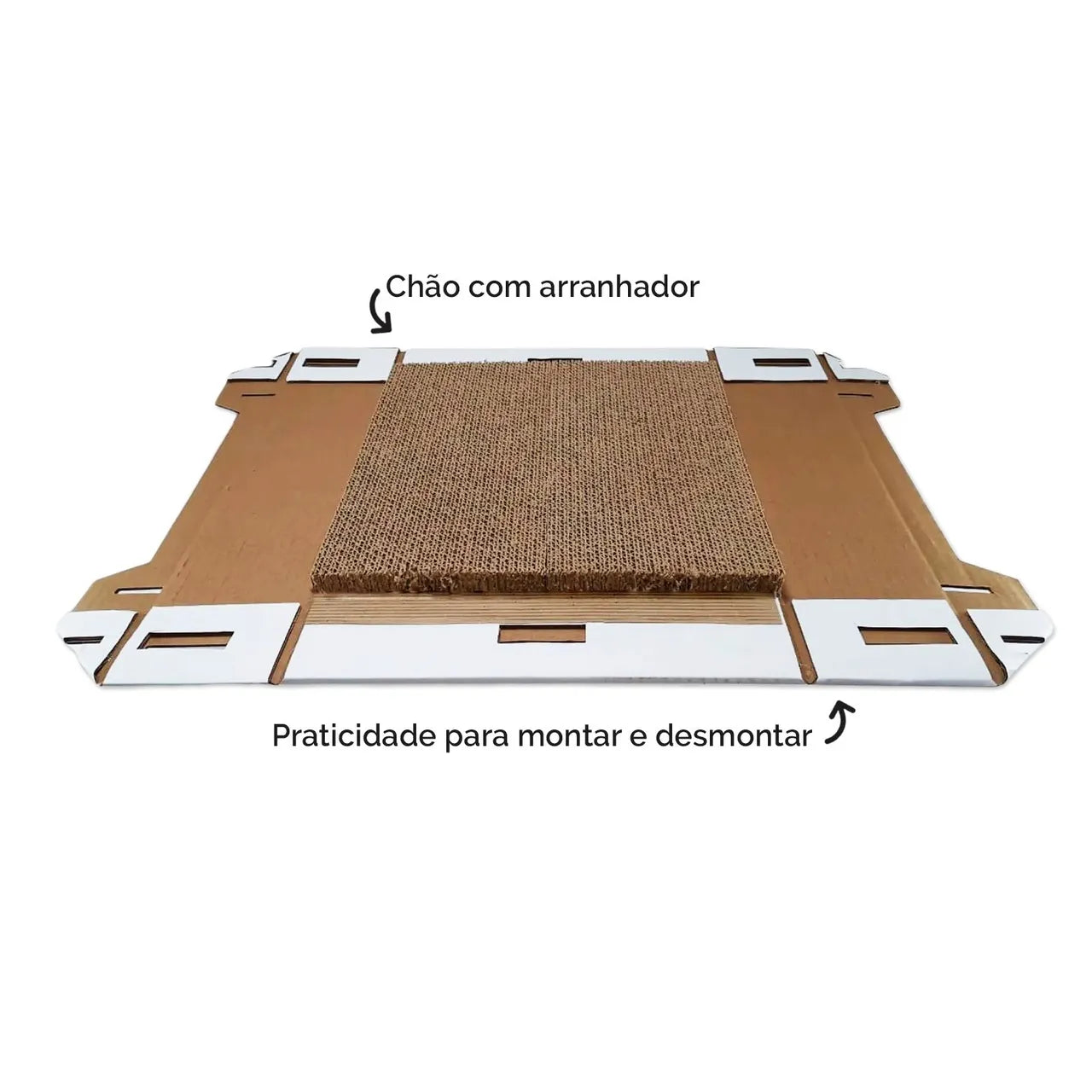- No interior possui uma arranhador de papelão de 15mm de espessura grudado na base para o seu gato arranhar sem dó!