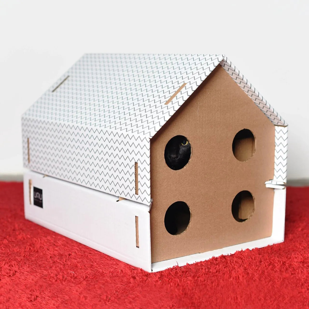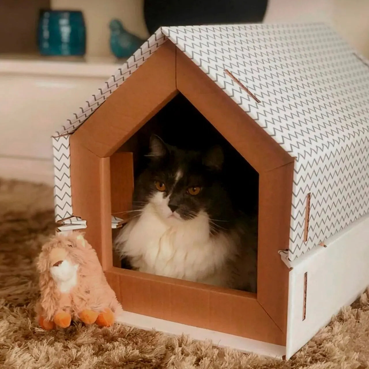 A UAUhaus é uma casinha para gatos de altíssima durabilidade, embora toda sua estrutura seja feita em papelão. O papelão utilizado, somado as dobras e encaixes, conferem uma alta resistência. O papelão é um material naturalmente térmico e agradável ao tato dos gatos, quente no inverno e fresca no verão, por isso o papelão é tão irresistível.